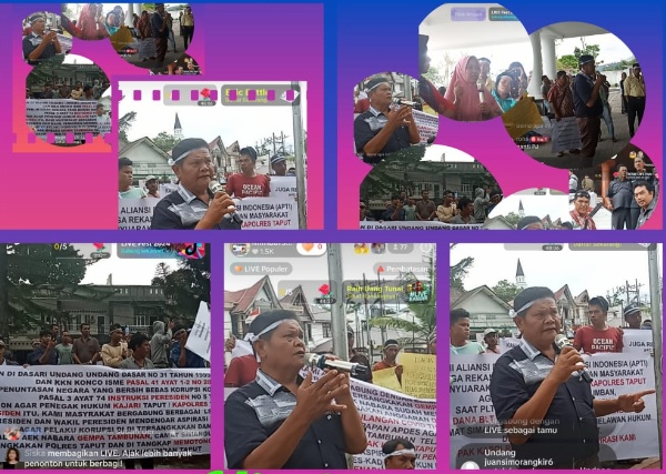 Aksi demo masyarakat itu dipimpin Ketua DPD APTI Simon Sinaga. Mereka meminta agar Kajari Taput, Kapolres Taput sebagai penegak hukum memproses dugaan penggelapan dana desa. Demo itu dilakukan agar presiden dan wakil presiden RI mendengarkan aspirasi dari masyarakat dan mengetahui realisasi dana desa.