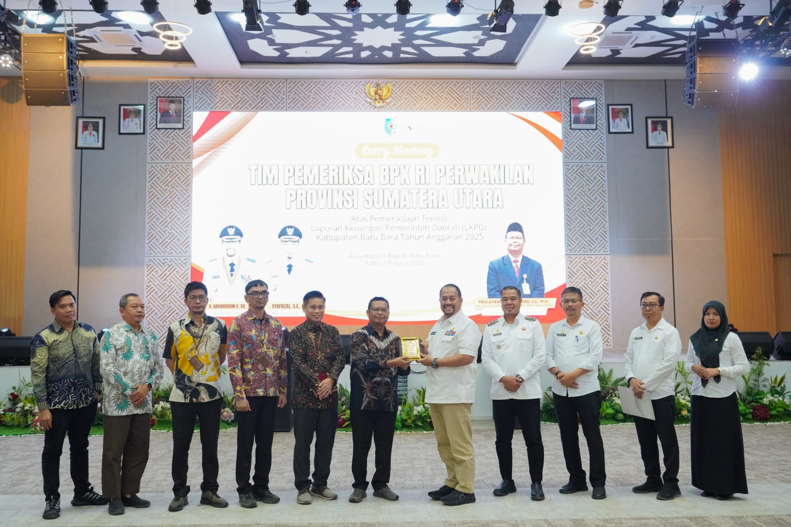 Bupati Batu Bara H. Baharuddin Siagian, S.H., M.Si., memimpin langsung Entry Meeting atas Pemeriksaan Terinci Laporan Keuangan Pemerintah Daerah (LKPD) Kabupaten Batu Bara yang dilaksanakan di Aula Kantor Bupati Batu Bara, Kecamatan Lima Puluh, Rabu (8/4/2026).