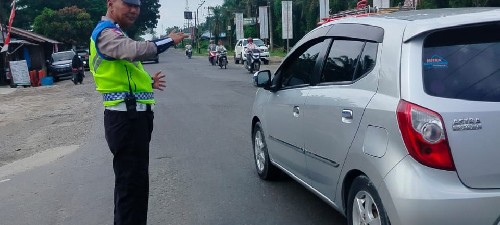 Personil Sat Lantas melakukan pengaturan lalulintas