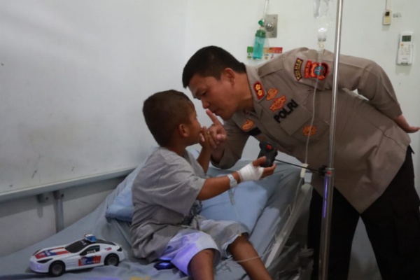 “Kita tadi baru selesai melakukan peninjauan dan mengecek kondisi anak kita ini jauh lebih baik, pulih kesehatan, mulai gembira dan sudah bisa berinteraksi dengan kita,” kata Kapolres.