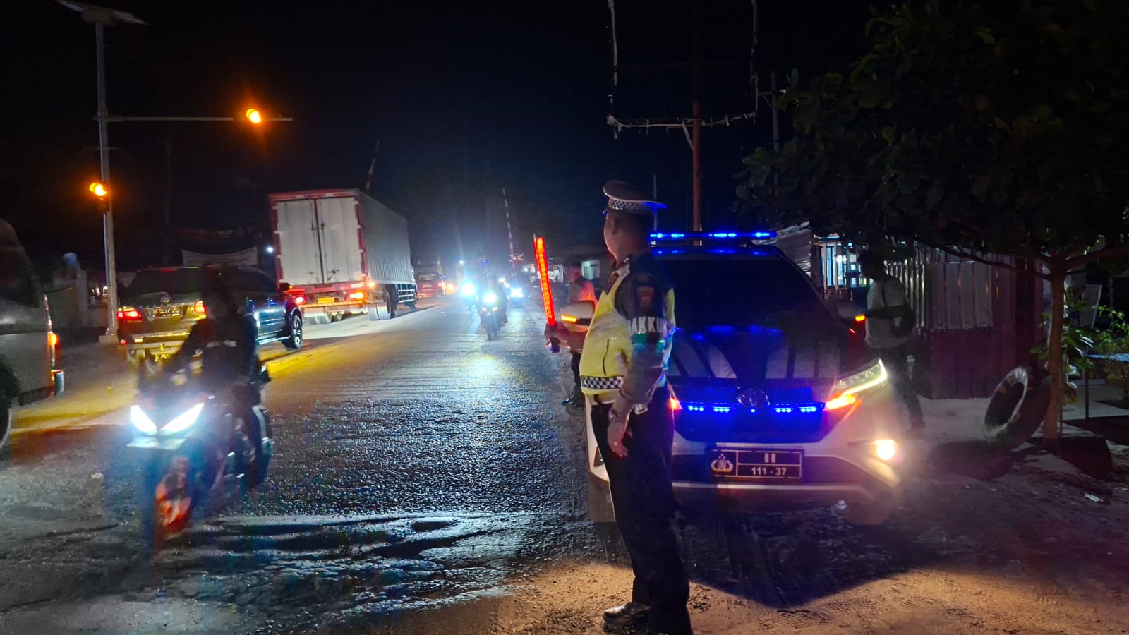BATUBARA Mimbarsumut. Sat Lantas Polres Batubara melaksanakan patroli blue light di lokasi rawan lakalantas dan macet.