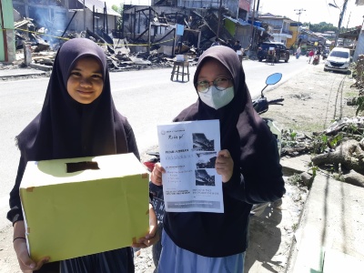 Untuk membantu korban kebakaran, Siswa SMAN 1 Teluk Dalam, membuat peduli kasih kotak amal dipimpin ketua Fakhrul R. Waruwu.