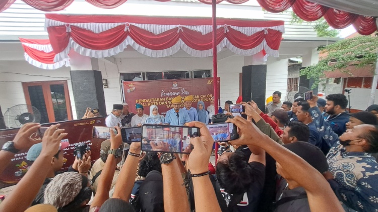 Setelah dari Deklarasi Donal, Andri, Partai pendukung dan relawan ramai – ramai berangkat ke kantor KPU Kota Binjai untuk mendaftarkan diri.