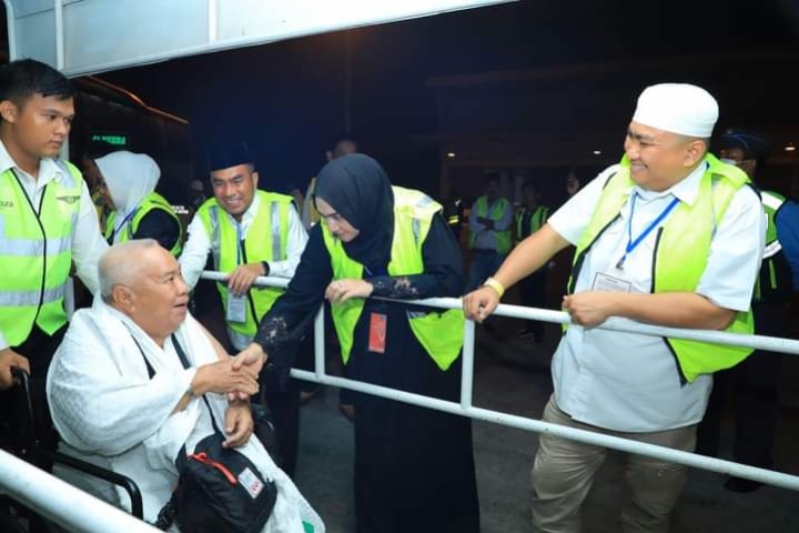 “Pada hari ini saya merasa bahagia karena dapat bertemu dan berkumpul dengan tamu-tamu Allah SWT, yang sesaat lagi akan menuju tanah suci Mekkah,” ucap bupati.