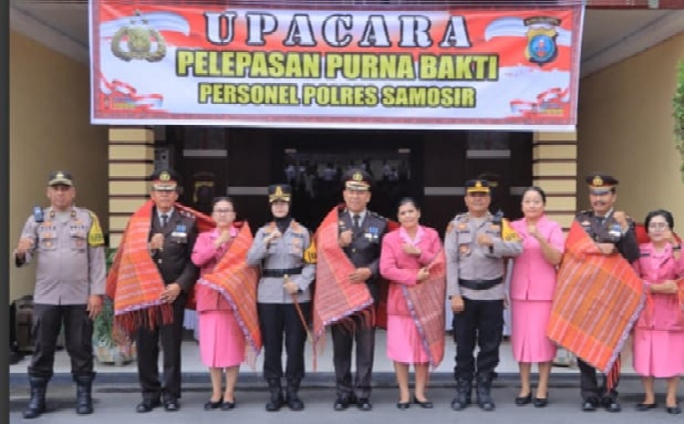 SAMOSIR (mimbarsumut.com) – Tiga perwira Polres Samosir resmi memasuki masa purna tugas. Polres Samosir gelar upacara pelepasan yang berlangsung khidmat di Lapangan Mako Polres Samosir, Rabu pagi (9/4/2025).