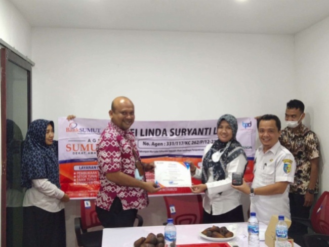 PT Bank Sumut Cabang Lima Puluh Kabupaten Batubara menyerahkan sebanyak 17 unit mesin edisi Sumut link dan QRIS kepada agen.