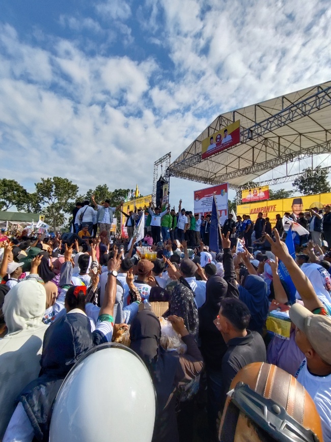 Belasan ribu massa dari pengusung, pendukung dan simpatisan Paslon Bupati dan wakil Bupati Batubara Nomor urut 2 Baharuddin dan Syafrizal menghadiri kampanye Akbar yang dilaksanakan di lapangan bola kaki Dolok Pop, Desa Perkebunan Dolok Kec.Limapuluh Kab. Batubara, Rabu (20/11/2024) petang.