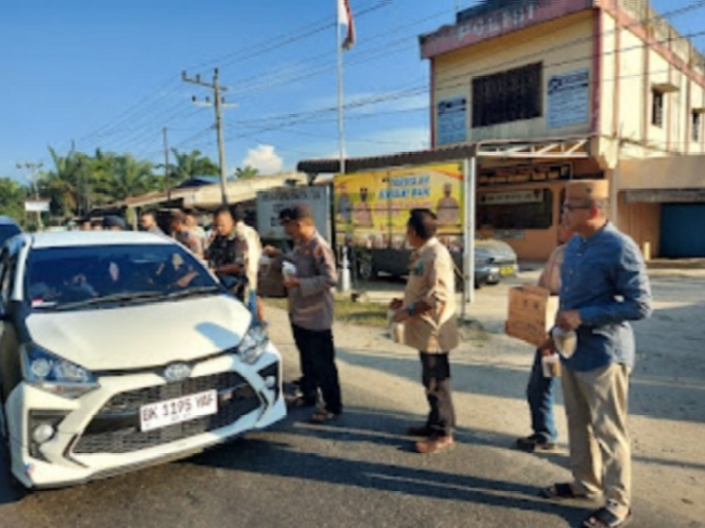 Manager PT Perk.Dolok dan Kapolsek Limapuluh bersama jajaran membagikan takjil kepada pengguna jalan.