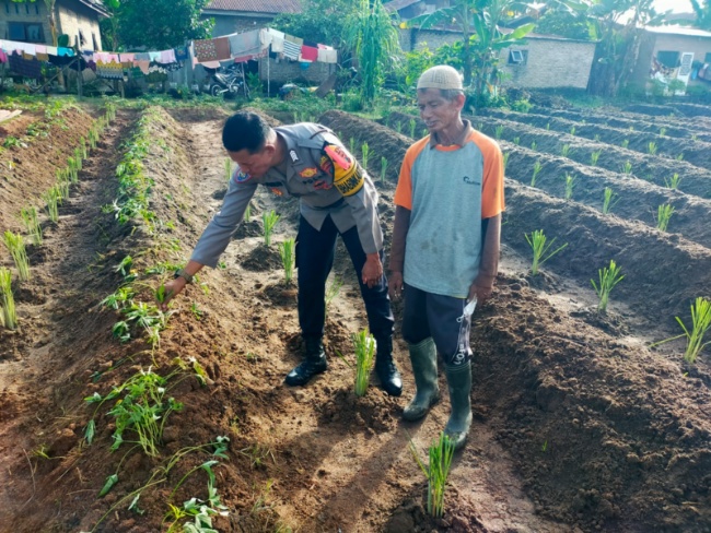 Bhabinkamtibmas Polsek Indrapura melaksanakan koordinasi serta pengecekan lahan pekarangan Ketapang sebagai percontohan dari Polsek Indrapura dalam mendukung program pemerintah untuk meningkatkan ketahanan pangan.
