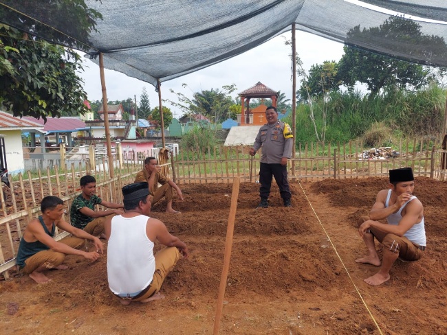 Personil Bhabinkamtibmas Polsek Limapuluh, Aipda Elijon H Manurung melaksanakan sambang dan gotong royong di Desa Cahaya Pardomuan Kec Datuk Lima Puluh Kab.Batubara, Selasa (7/2/2023)