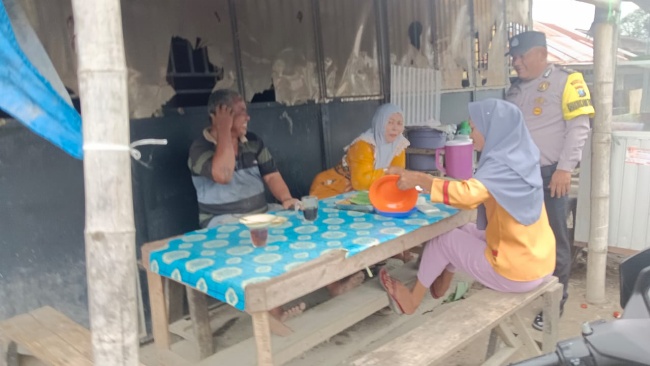 Bhabinkamtibmas Polsek Medang Deras Aiptu R.Rivai saat sambang kepada warga Desa Nenassiam