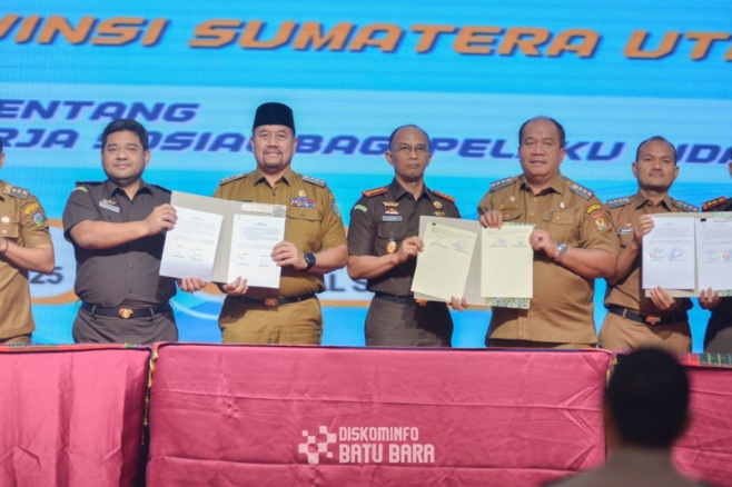 Bupati Batubara H. Baharuddin Siagian SH.MSi menghadiri penandatanganan Memorandum of Understanding (MoU) antara Kejaksaan Tinggi Sumatera Utara dengan Pemerintah Provinsi Sumatera Utara, serta Kejaksaan Negeri se-Sumatera Utara dengan pemerintah kabupaten/kota se-Sumatera Utara tentang sinergitas pelaksanaan pidana kerja sosial bagi pelaku pidana di Provinsi Sumatera Utara.