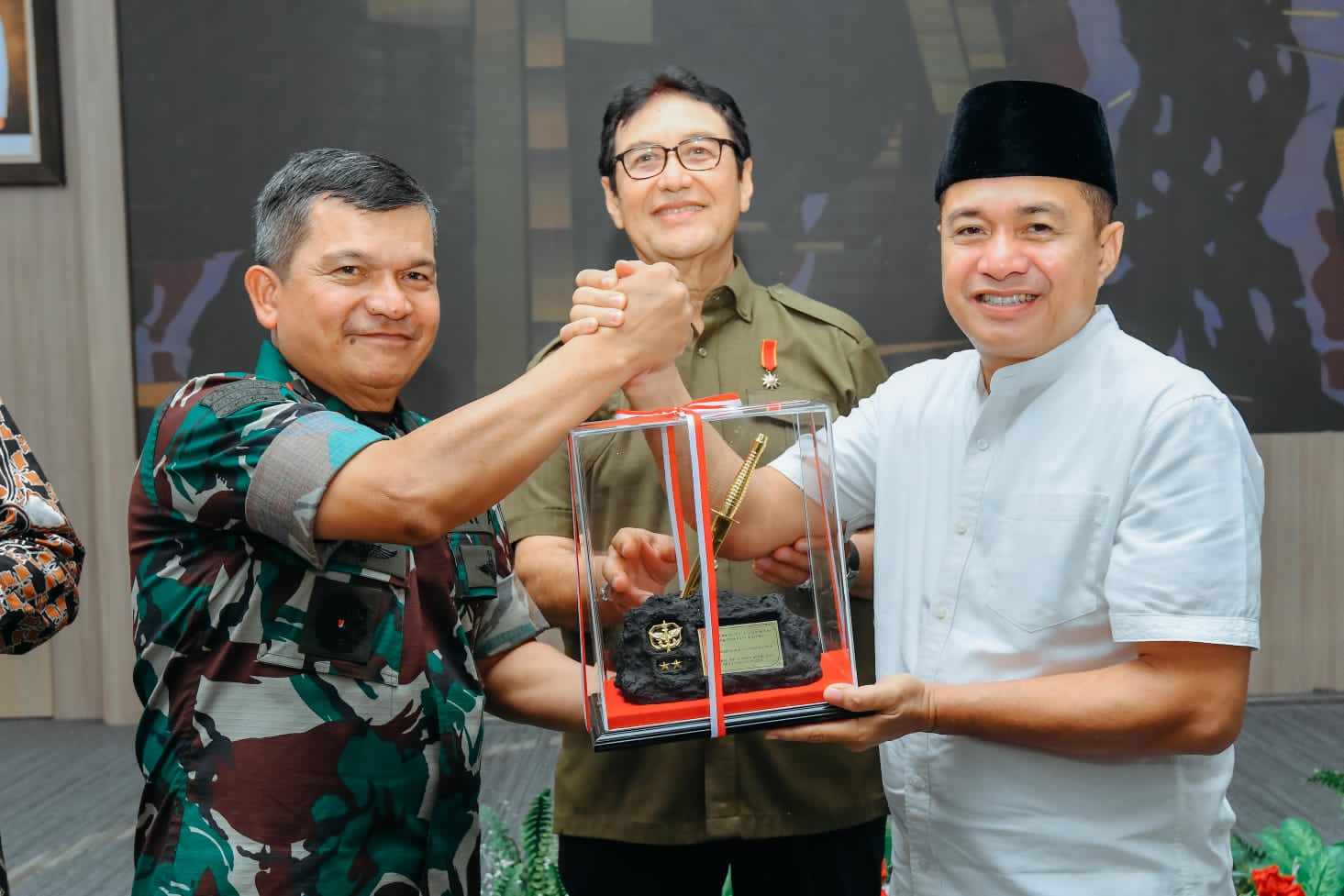 Pangdam I BB Mayjen TNI Achmad Daniel Chardin memberikan cinderamata kepada Bupati Zahir