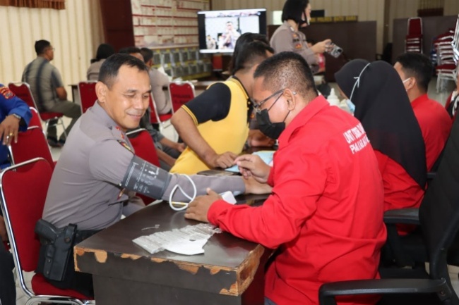 Kegiatan donor darah dilaksanakan di aula Bhayangkari Polres Batubara diikuti seluruh personil, Selasa (7/6/2022).