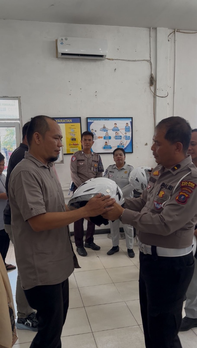 Pemberian Helm gratis kepada wajib pajak Sat Lantas Polres Batubara bekerjasama dengan Jasa Raharja sebagai Mitra dalam menjaga keselamatan berlalu lintas.