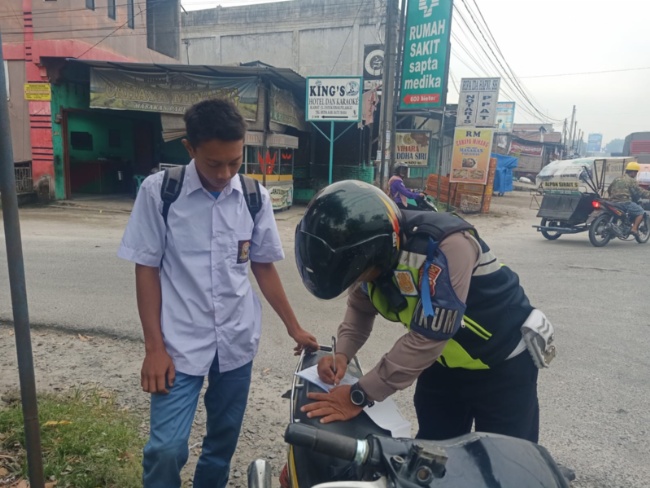 Selain itu, Satlantas juga memberikan teguran kepada 78 pelanggar menggunakan sepeda motor yang didominasi pelajar.