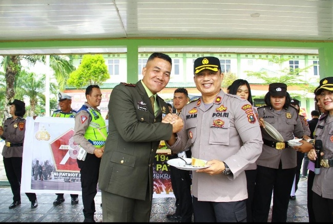 Kapolres Batubara yang diwakili Wakapolres Batubara memberikan ucapan Selamat Ulang Tahun TNI yang ke-78.