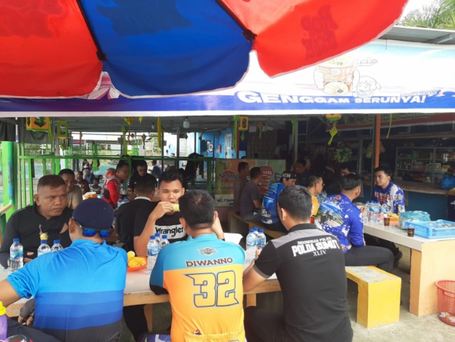Wakapolres Batubara Kompol Imam Alriyudin, Kasat Intelkam Polres Batubara AKP Rubenta Tarigan,SH Kasat Lantas AKP HW Siahaan, SH .Citra M.Bangun SE pemilik pemandian Air panas Desa Sumber Padi dan komunitas sepeda 20 orang