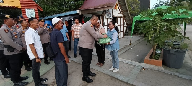Selanjutnya Kapolres memberikan Bantuan Sosial kepada warga masyarakat yang kurang mampu yang tinggal di sekitar lokasi wisata Pantai Sejarah berupa sembako, harapan Kapolres kiranya sembako yang diberikan dapat mengurangi beban hidup mereka.