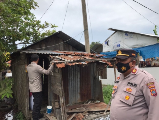 Sambil memantau pemberian dana Bantuan Pangan Non Tunai (BPNT) Kapolres mengatakan menyempatkan mengunjungi kediaman ibu Maimunah yang sudah lansia, tinggal di gubuk yang tinggal menunggu roboh.