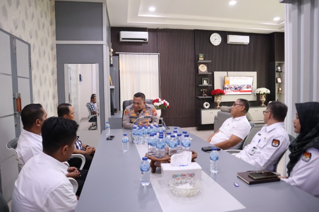 Kapolres Batubara AKBP Doly Nelson HH Nainggolan SH.MH menerima audensi Ketua KPU Batubara Erwin serta jajaran di ruang kerja Kapolres, Senin (26/5/2025) pukul 10.00 WIB hingga selesai.