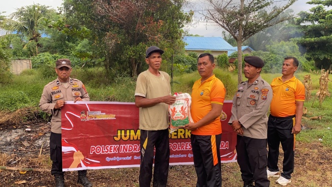 Kapolsek Indrapura Bagikan Sembako Kepada Warga Kurang Mampu