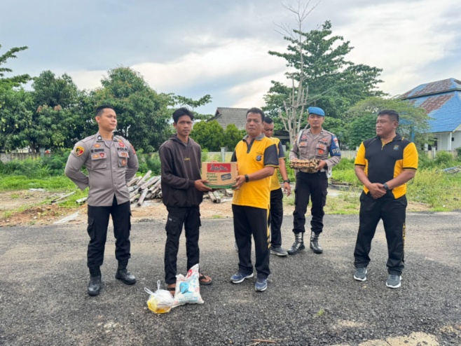 Kapolsek Labuhan Ruku AKO Cecep Suhendra memberikan sembako kepada kaum dhuafa, Jumat (24/10/2025) pagi.