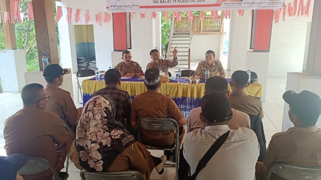 Kapolsek Labuhan Ruku, AKP Cecep Suhendra, beserta jajarannya melakukan pertemuan dengan tokoh masyarakat dalam rangka cooling system Pemilu 2024. Kedatangan Kapolsek Labuhan Ruku beserta jajaran diterima oleh Camat Sei Balai Wali Sagala beserta perangkat desa setempat di Kantor Desa Sei Balai Kecamanatan Sei Balai Kabupaten Batubara, Selasa (3/9/2024)