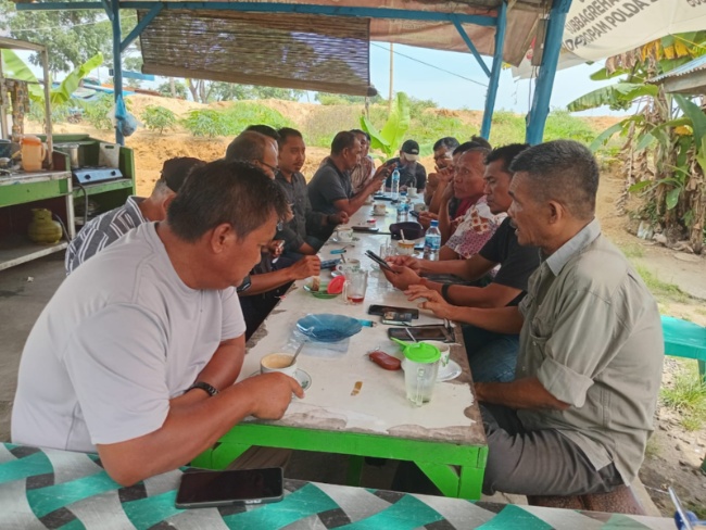 Puluhan wartawan mengikuti silaturahmi dengan Polres Batubara melalui Kasi Humas Polres Batubara di warung kopi di Jalinsum Desa Perkebunan Dolok Kecamatan Lima Puluh, Rabu (17/7/2024).