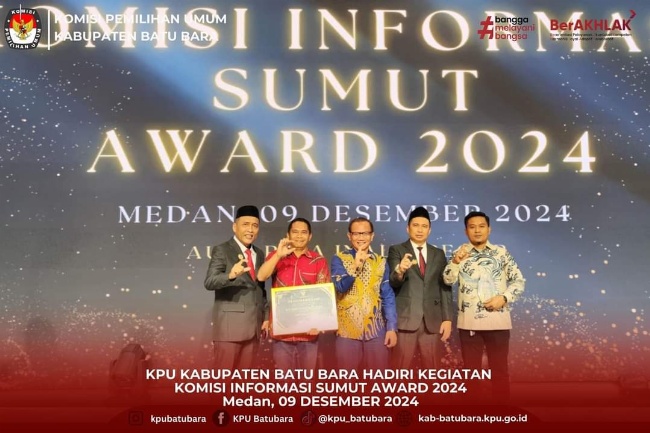 Komisi Pemilihan Umum (KPU) Kabupaten Batubara mengikuti kegiatan KI Sumut Award, di Aula Raja Inal Siregar, Jl. Pangeran Diponegoro No 30 Medan. Senin, (09/12/2024)