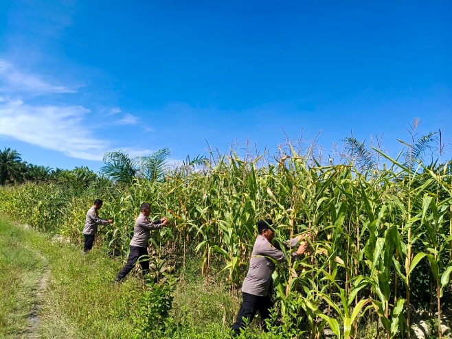 Polsek Indrapura juga mendukung program pemerintah untuk menjamin ketersediaan pangan yang berkelanjutan merupakan langkah strategis dalam menjaga stabilitas ketahanan pangan di wilayah hukum Polsek Indrapura Polres Batubara, adapun tanaman jagung yang dipanen sbb :