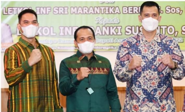 Bupati Batubara Zahir (tengah) diabadikan bersama Dandim 0208 Asahan, yang lama dan yang baru