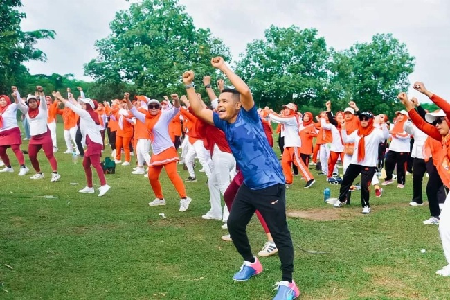 Ribuan emak – emak masyarakat Kecamatan Laut Tador ikut memeriahkan senam sehat di Lapangan Tanjung Seri, Kecamatan Laut Tador, Minggu (25/08/2024).