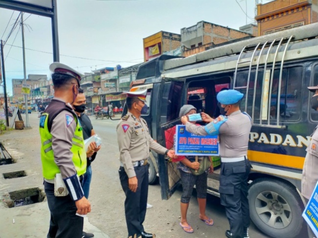 “Pada hari ini kita berhasil menjaring / memberikan himbauan berupa teguran lisan sebanyak 18 orang pengemudi serta membagikan masker sebanyak 58 buah dan menempelkan Stiker kepada 36 unit kendaraan,” jelas Kasat.