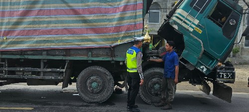Kapos Yan 1 Ipda G Sinaga bersama personil melakukan pengaturan lalu lintas di lokasi mobil truk yang mengalami kerusakan (mogok).