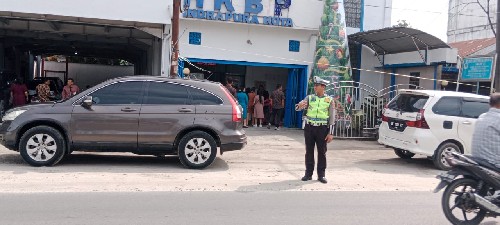 Dalam rangka Ops Lilin Toba 2025 personil Sat Lantas Polres Batubara patroli dan pengamanan di Gereja pada ibadah Gereja Minggu 21 Desember 2025 pukul 10.00 WIB hingga selesai