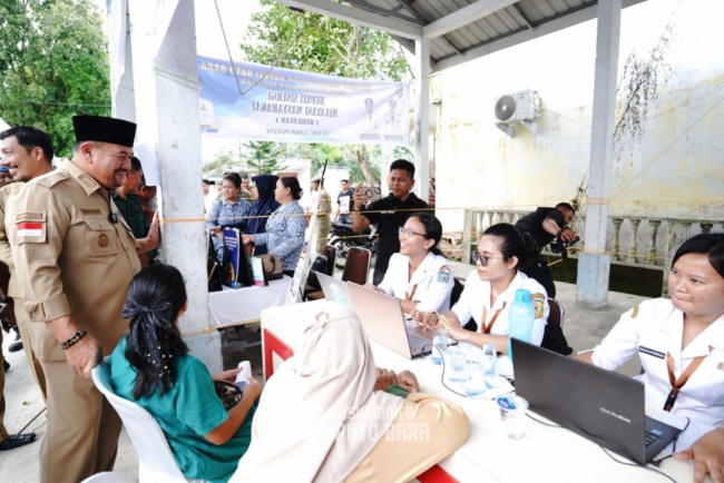 Bupati Batubara, H. Baharuddin Siagian, S.H., M.Si., meninjau langsung pelaksanaan BERLAYAR ke-12 di Kecamatan Lima Puluh yang disambut antusias warga, Kantor Camat Lima Puluh, Selasa (7/10/2025).