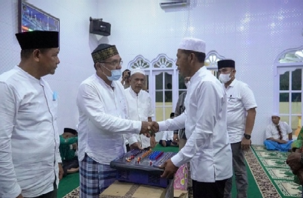 Setdakab Batubara Sakti Alam Siregar menyerahkan 1 unit soundsystem kepada pengurus Masjid At-Taqwa