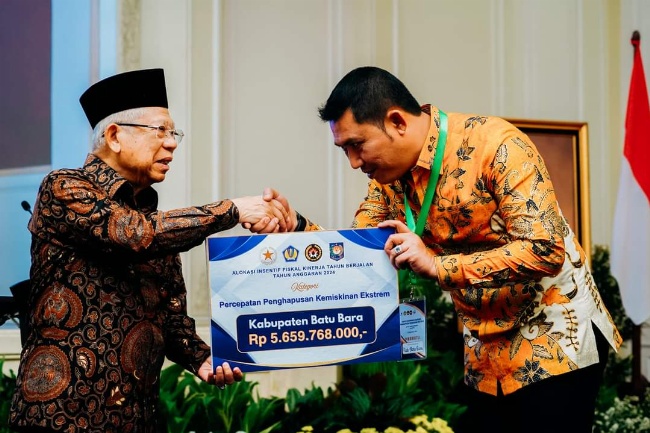 Pemerintah Kabupaten Batubara menerima penghargaan kategori daerah berkinerja baik dalam penghapusan kemiskinan ekstrem tahun 2024. Penghargaan tersebut diterima langsung oleh Penjabat Bupati Batu Bara Heri Wahyudi Marpaung, S. STP, M.AP di Auditorium Sekretariat Wakil Presiden RI, Jakarta Pusat, Rabu (18/09/24).