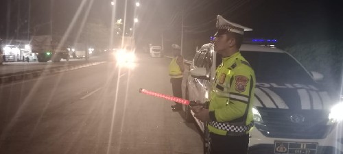 Petugas menggunakan kenderaan 1 Unit R-4 ISUZU D-MAX SAMAPTA patroli di Simpang Pintu Tol Limapuluh