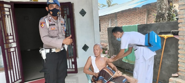 Kegiatan vaksinasi secara door to door ini dilakukan oleh personil Polsek Medang Deras yaitu Kanit Propam Polsek Medang Deras Bripka Bustami bersama Tim Vaksinator dari Puskesmas Pagurawan atas nama Yudi A. MKes.