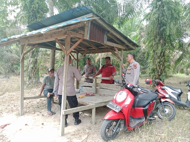 Kasat Binmas Polres Batubara dan anggota menyampaikan pesan pesan kamtibmas kepada petani Dsn IV Desa Mekar baru Kec. Datuk Tanah Datar agar tetap waspada terhadap aksi premanisme dan tetap menjaga situasi aman Kondusif khususnya di Wilkum Polres Batubara