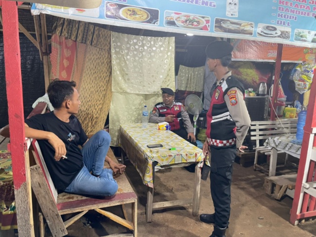Personil Sat Samapta Laksanakan Cooling System Di Warung Simpang Tol Malam Hari