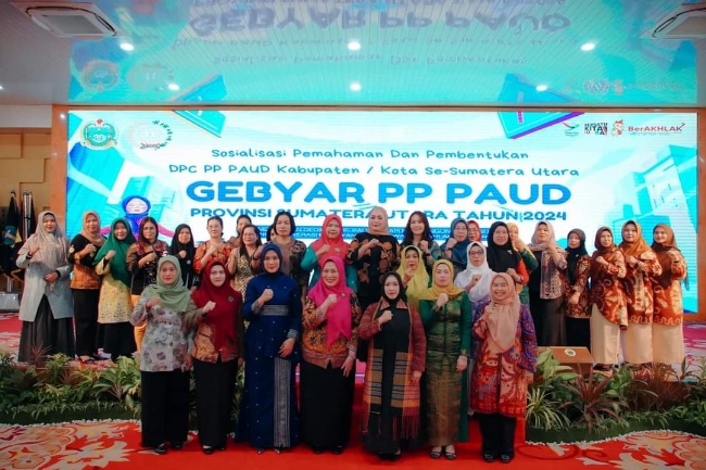 Kegiatan ini dihadiri oleh Bunda Pendidikan Anak Usia Dini (PAUD) Sumatera Utara (Sumut) Tyas Fatoni dengan tema ‘Sinergitas dan Dedikasi PP-PAUD dalam Membangun Fondasi Kuat menuju Generasi Emas yang Bertakwa, Berakhlak dan Cerdas di Aula Tengku Rizal Nurdin, Rumah Dinas Gubernur, Medan, Sumut, Rabu (04/09/2024).