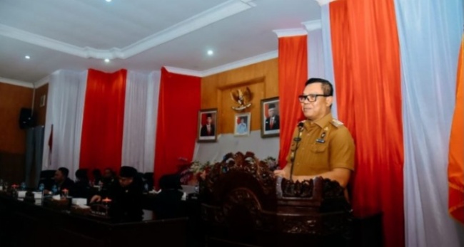 BATUBARA (mimbarsumut.com)- Pj Bupati Batubara Nizhamul, SE, MM memberikan tanggapan terhadap Laporan Keterangan Pertanggung Jawaban (LKPJ) Tahun Anggaran 2023 pada Rapat Paripurna DPRD Batubara di Kelurahan Limapuluh Kota, Kecamatan Limapuluh, Senin (06/05/2023).