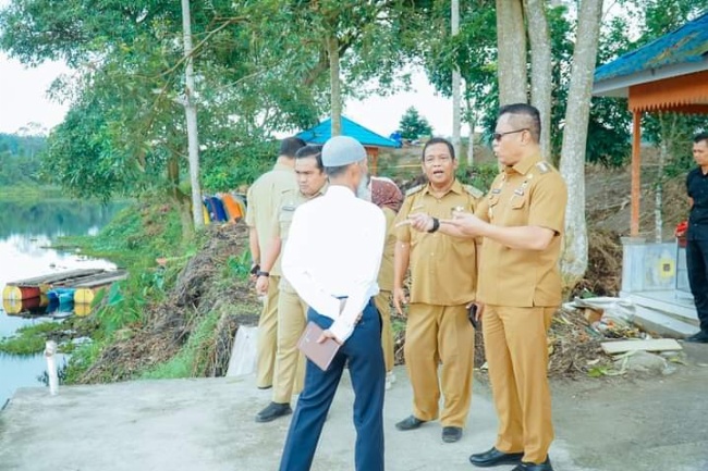 Penjabat (Pj) Bupati Batubara Nizhamul, S.E, M.M melakukan peninjauan proses pembangunan bumi perkemahan yang berada di Danau Laut Tador, Kecamatan Laut Tador, Senin (19/02/2024).