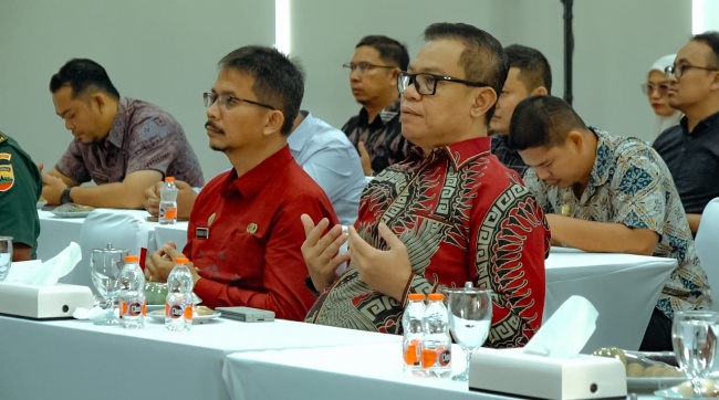 Tampak mendampingi Pj. Bupati Nizhamul mengikuti rakor secara virtual yakni Asisten Perekonomian dan Pembangunan, Staf Ahli Bidang Pembangunan Ekonomi dan Keuangan, Inspektur Daerah dan sejumlah Kepala OPD seperti Kadis Kominfo, Kepala BKAD serta Kepala Bappelitbangda.