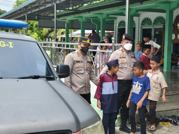 Sementara Kanit Samapta Ipda Elon Sitinjak SH dan Kanit Binmas Ipda Rener H. Tambunan SH.MH melakukan pengamanan di Masjid Darul Muttaqin Desa Pematang Nibung Kec. Medang Deras.