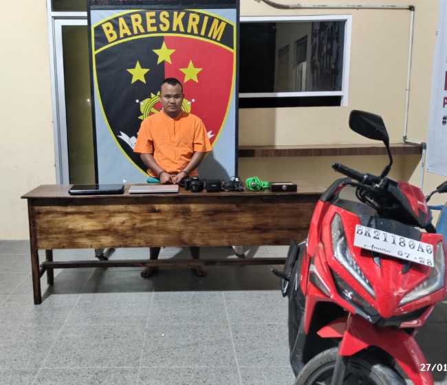 Kronologis kejadian.Aksi pencurian terjadi saat pemilik rumah sedang bepergian ke Medan, Selasa (23/1/2024). Dan Kamis (25/1/2024) sekira pukul 20.00 WIB Ibnul Fandika kembali dari Medan dan merasa terkejut karena dua unit laptop yang disimpan di kamar sudah tidak ada begitu juga 1 buah bor merek RYU warna hijau, 1 Loudspeaker warnah hitam Merek EGGEL , 1 kotak cicin hias batu berjumlah 10 cincin, 1 buah batu hias, 1 buah gelang , 1 unit sepeda notor honda vario warnah merah, 1 buah pisau lipat warna hitam, 1 buah Tas warna coklat merek Polo,