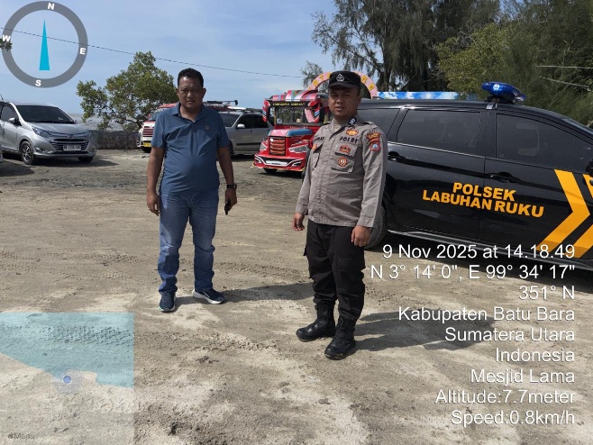 Personil Polsek Labuhan Ruku Brigadir Nicolas Situmorang bersama Ipda ZF Purba melaksanakan monitoring dan pengamanan Objek Wisata Pesona Bahari Pantai Bunga pada hari Libur akhir pekan di Wilkum Polsek Labuhan Ruku, Minggu (9/11/2025) pukul 14.30 WIB hingga selesai.